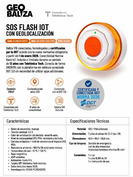 BALIZA SOS FLASH EVO V16 IOT CONECTADA Y CERTIFICADA SOSFLASH - BALIZA SOS FLASH EVO V16 IOT CONECTADA Y CERTIFICADA DGT